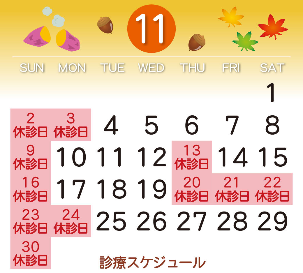 休診日のお知らせ|令和7年11月〜令和8年1月