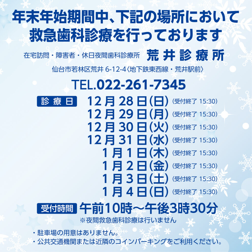年末年始期間中の救急歯科診療について